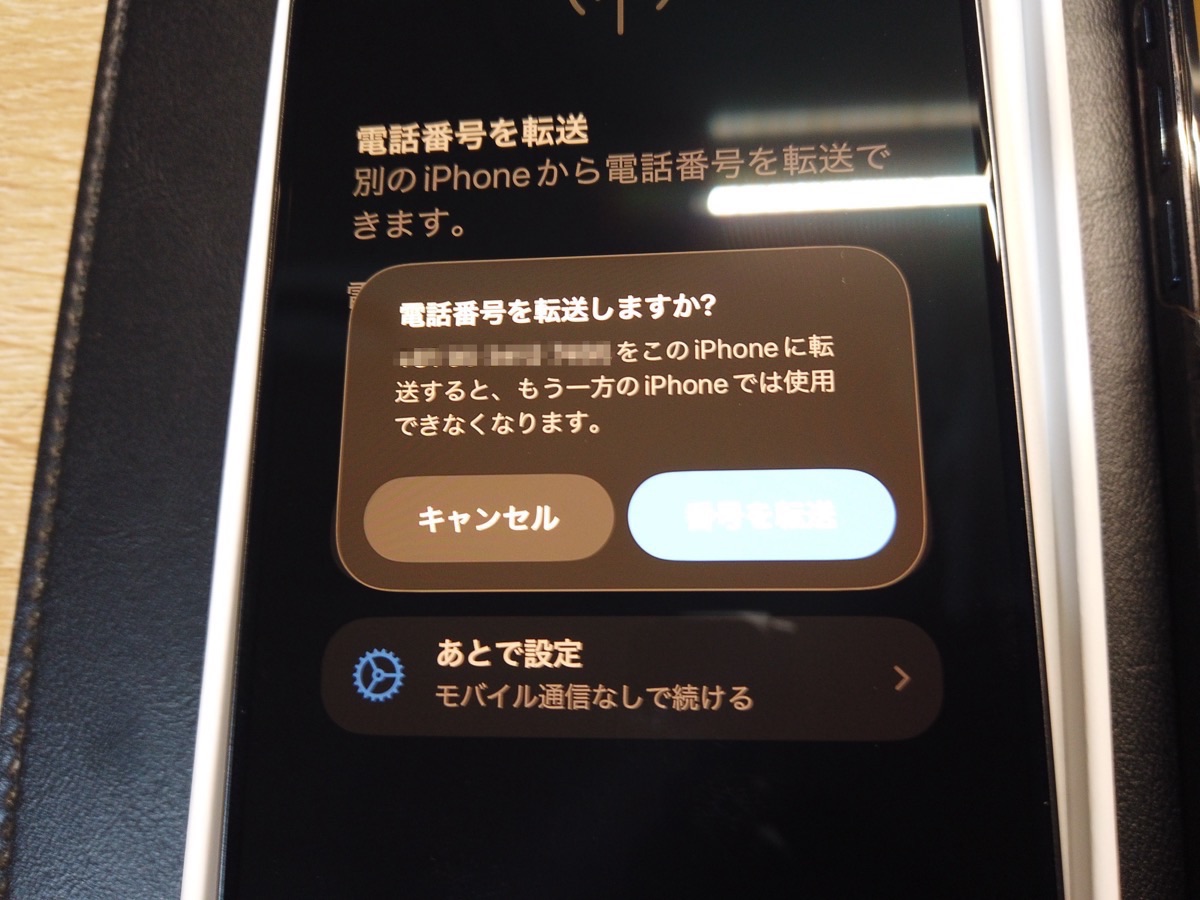 すると電話番号の移行を聞いてきます。