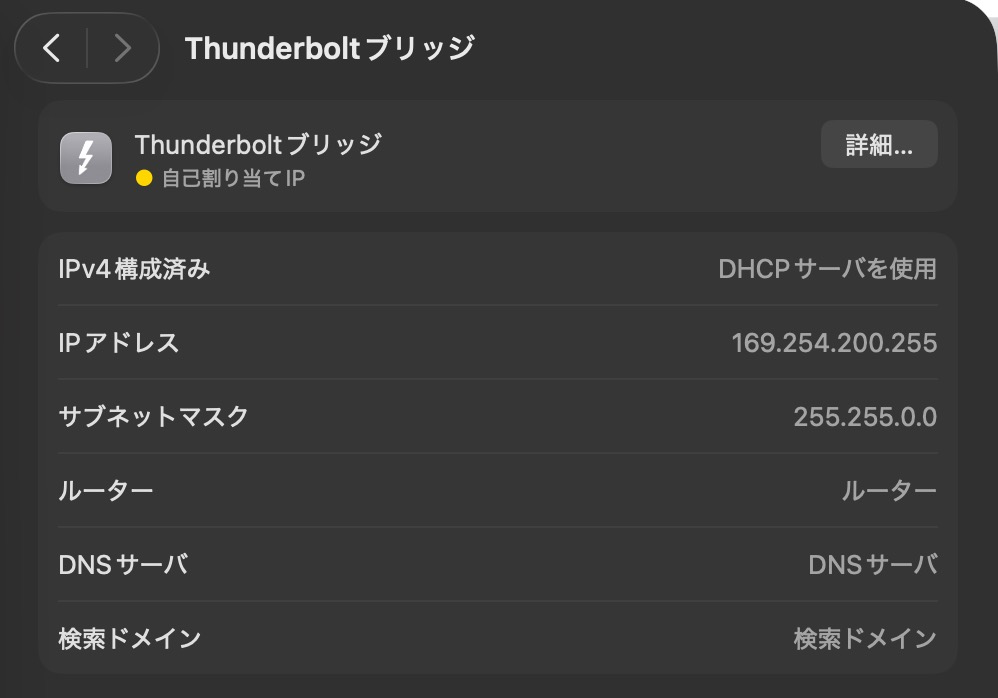 Thunderboltブリッジは「未接続」のままになります。